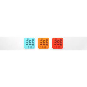 Tiene una alarma de tres colores. Cuando la temperatura corporal es inferior a 37,6 ° C, se muestra blanca; cuando la temperatura está entre 37,6 ° C y 37,9 ° C, se muestra amarilla. Cuando la temperatura es superior a 38 ° C, es roja con un sonido de advertencia. Es conveniente e intuitivo sentir la temperatura corporal de la persona que se está evaluando. Además, nuestros termómetros pueden almacenar hasta 9 conjuntos